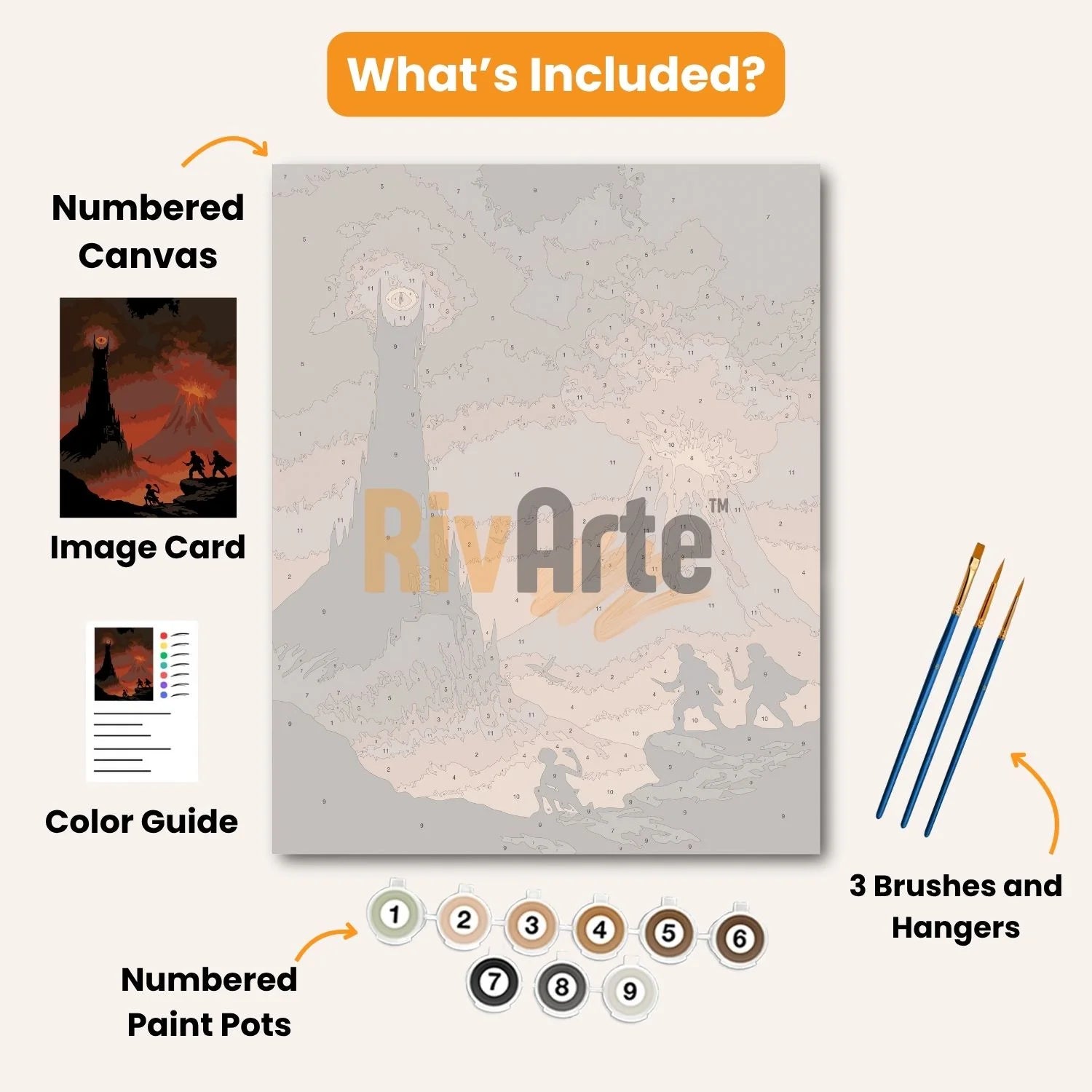 Every kit comes with a numbered canvas, acrylic paints, three precision brushes, a color reference card, and hanging tools. Everything you need is inside — no extra materials required.