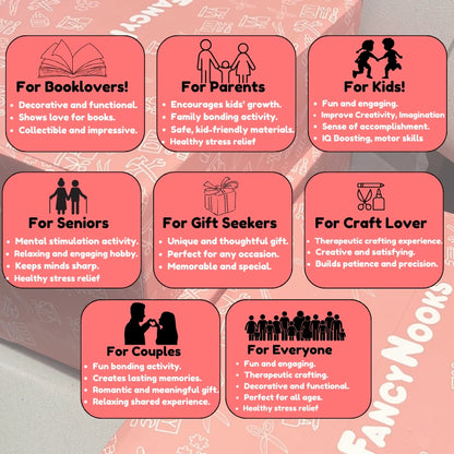 Our booknook kits are designed to be user-friendly and enjoyable for all skill levels. Each kit comes with clear, step-by-step instructions to guide you through the assembly process.